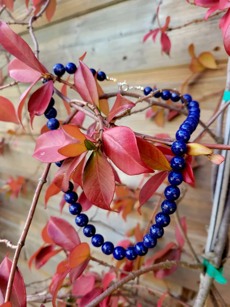 Collier en perles lapis lazuli 45 cm fermoir en argent